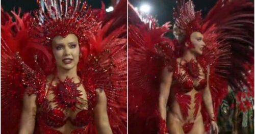 A influenciadora Virginia, 26, recebeu vaias de algumas pessoas do público ao ser anunciada oficialmente como a Rainha de Bateria da Grande Rio.